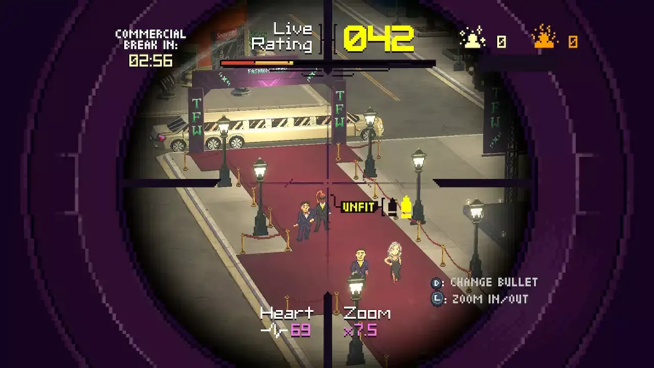 Za pomysł, za luźne podejście do siebie, za tonę tych małych, stylowych detali - polubiłem tego boomer shootera. Z tyłu głowy postawiłem na tej grupie krzyżyk, a terapią okazał się poluzowany pasek od spodni. Słyszałem o tym tytule, kiedy pojawił się na PC w sierpniu zeszłego roku (“Bardzo pozytywny” odbiór graczy na Steam) i miło go gościć na Switchu, gdzie takie ciekawostki są przeze mnie o wiele chętniej przyswajane.Całość nie nadużywa naszej gościnności i oferuje kampanię główną na około 4h, okraszając ją szemraną intrygą i komicznymi zwrotami akcji. Dla chętnych dorzucono kilka wyzwań i niewiele powodów do szybkiego powrotu. System punktacji, choć zabawnie przedstawiony, jakoś nie nakręcał mnie do ponownego pościgu za niedopasowanymi stylówkami.