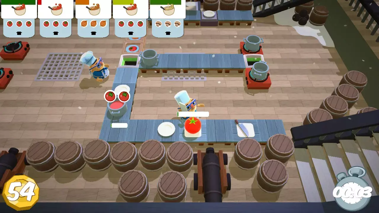 No i nie oszukujmy się. Nie o to chodzi w tej grze. Ideą gry jest lokalna rozgrywka na kanapie w kilka osób. I właśnie tutaj pojawia się cały potencjał tej produkcji. Te okrzyki, rozkazy, kierowanie zespołem. Zauważyłem, że zawsze pojawi się jakiś lider, kierujący wszystkimi innymi. Będzie też osoba, grzecznie wykonująca polecenia pozostałych. Czasem zdarzy się jakiś gracz, który buntuje się “dla zasady”. Generuje to potężną dawkę śmiechu oraz bojowych okrzyków zagrzewających do gotowania.