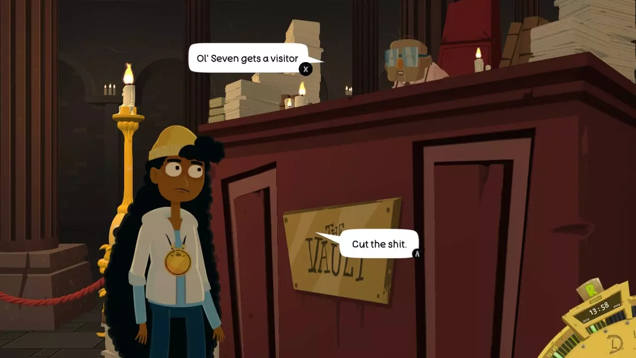 Spirala gry zakłada przesuwanie nas krok po kroku do rozwiązania kolejnych zagadek, aż po tę finalną. Od przekonania świętego Piotra do oddania nam klucza do skarbca, kiedy nie ma pojęcia, co nadchodzi, przez bycie odpowiednio miłym dla innych. Cała gra bazuje na metodzie prób i błędów. Ona wręcz tego prawa nadużywa. Musicie mieć świadomość, że polegniecie tu wielokrotnie i nie jest to point & click, który rządzi się znanymi przez graczy prawami. Rzadko polega na używaniu przedmiotów w odpowiednim miejscu i wyczerpywaniu wszystkich linii dialogowych. Czas, misiu, czas jest tu kluczowy. Często nie masz go, żeby z kimś pogadać, a bycie w stosunku do niego opryskliwym, będzie miało swoje konsekwencje. Jeśli w tej samej linii będzie trzeba do niego wrócić, to przykro mi, ale musisz cofnąć się jeszcze kilka kroków wstecz. Zanim go olałeś.